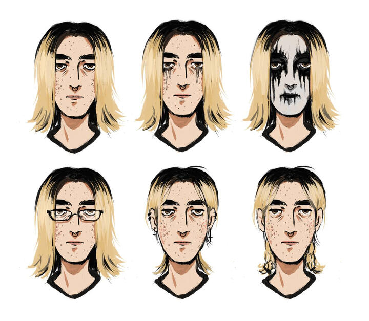 Has nose and eyebrow piercing. Always has lots of bruises and scratches. Always wears black clothes.Keen list: Ryan (Infinity Train), Snuffkin (Moomins), Hachiman Hikigaya (oregairu), Janis Ian (Mean Girls)