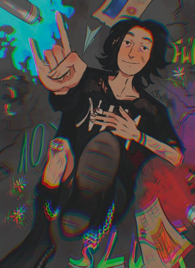 Has nose and eyebrow piercing. Always has lots of bruises and scratches. Always wears black clothes.Keen list: Ryan (Infinity Train), Snuffkin (Moomins), Hachiman Hikigaya (oregairu), Janis Ian (Mean Girls)